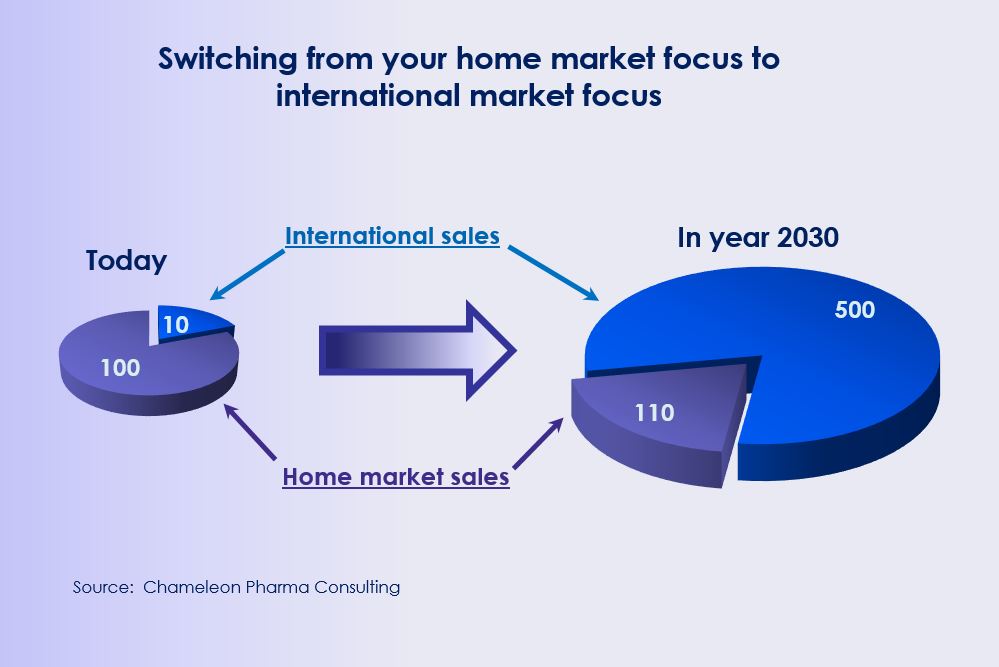 In 2030, about 45% of sales for Consumer Heath & Pharma companies will be conducted in international Emerging Markets. Introducing your own consumer health, cosmetics, Food supplements or Rx products to additional growing markets in Latin America, Russia/CIS region, Asia, Europe or the USA renders manufacturers less dependent on their home market. Expert studies have shown that, if 70% of sales or more is generated in different regions (15 to 20 countries) of the world, a company would be much more crisis-resistant towards any future international challenges.
