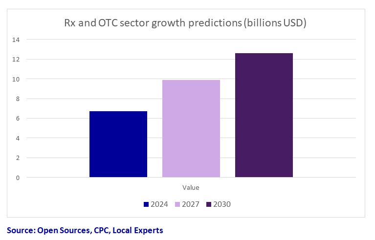 With a relatively consistent CAGR of 9.0% over the past 5 years, by 2030 the Filipino OTC market alone is expected to balloon to 12.6 billion US Dollars in value.